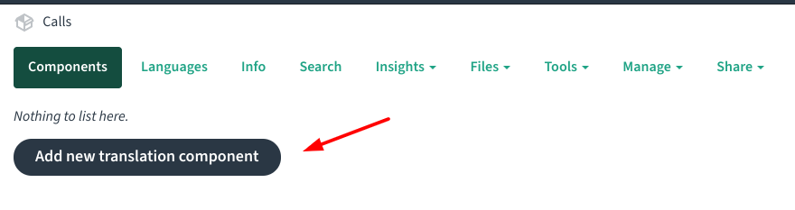 This step makes sense when the project has its own repository (e.g. Calls) or if it's helpful to have a separate translation entry point. Another option is to simply skip this step, and add a new component to an existing project.
